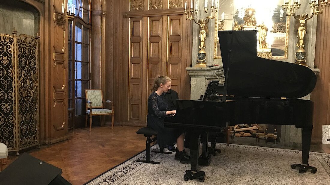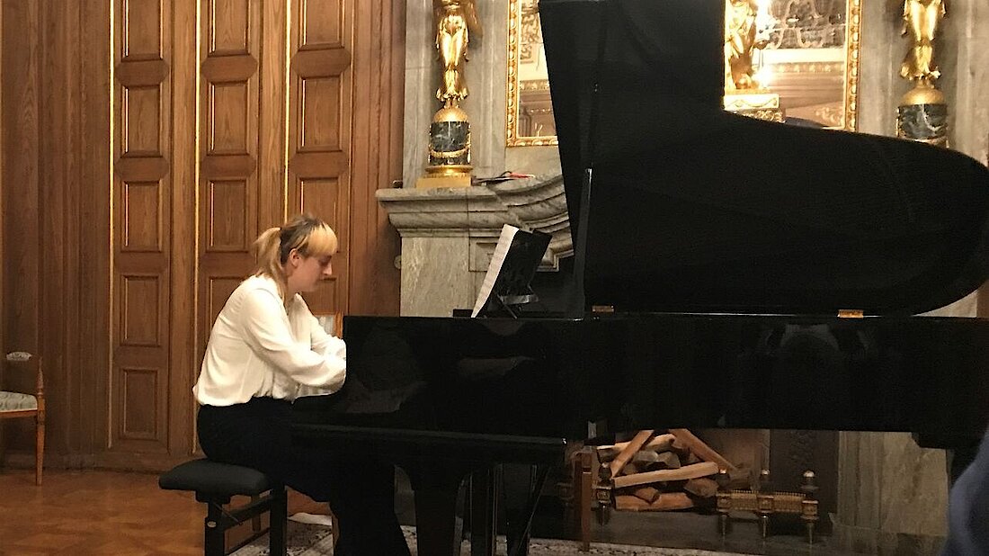 Eine besondere Herausforderung war das längste Klavierstück des Abends, „Nachklänge von Bornholm“, welches von Luisa Mühler gespielt und dem hohen musikalischen und technischen Anspruch durch ihre Interpretation gerecht wurde.