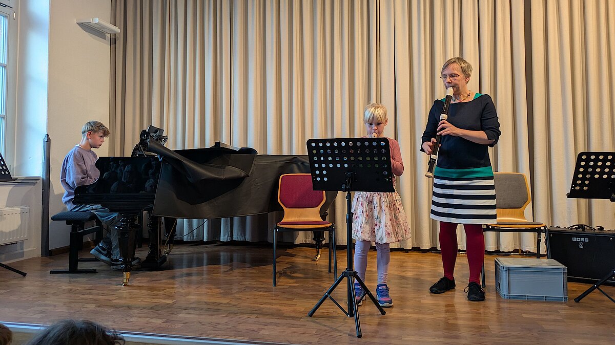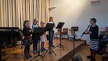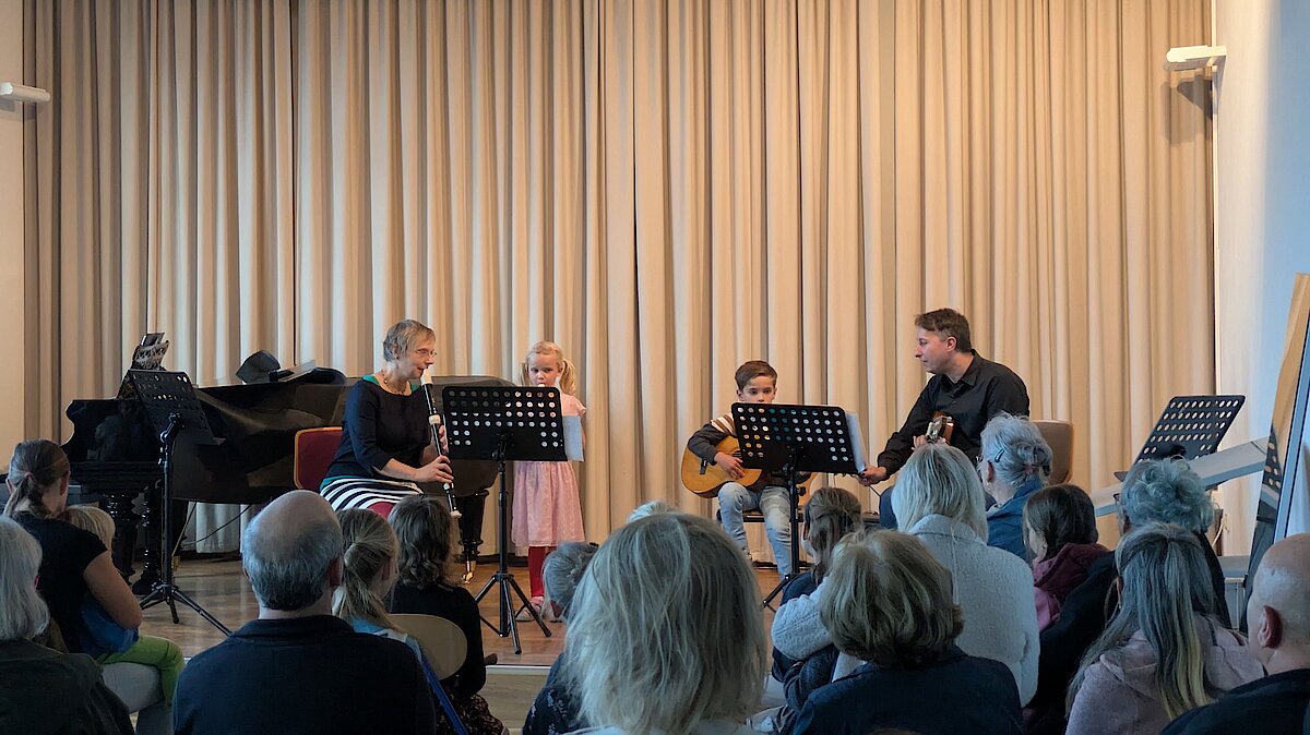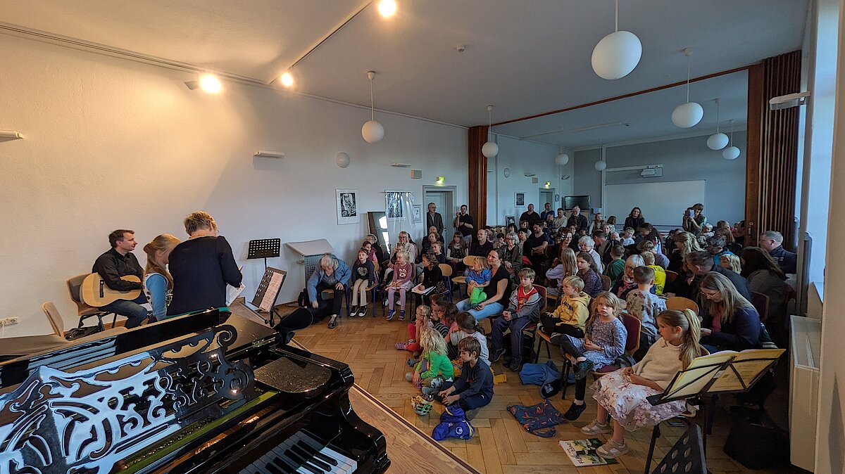Am 24. September gab es seit langem ein Konzert der Kleinsten. Uta Geser und Frank Neubauer luden alle Eltern, Großeltern und Geschwister ihrer Musikkinder ein, um das gelernte aus den letzten Monaten oder sogar Jahren zu zeigen. Von 5-10 Jahren waren alle Altersklassen vertreten. Ob an der Flöte oder der Gitarre, die Talente sind riesig und das Interesse besonders groß. Die Resonanz war riesig und so war der Kammermusiksaal bis auf den letzten Platz gefüllt. Mit Aufregung und viel Mut präsentierte jedes Kind ein bis zwei Musikstücke. Dafür gebührt ihnen großer Respekt, denn bisher haben sie nur für sich und ihren Lehrer gespielt aber nie vor Publikum. Und weil es allen so großen Spaß gemacht hat, wurde allen Gästen schon bald ein weiteres Konzert versprochen!