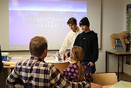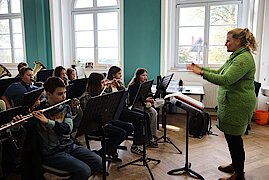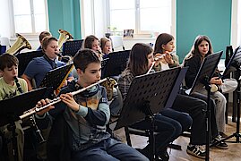 Musikalisch gab es ebenfalls einiges zu entdecken: Die Bläserklasse 6 sowie die Bandklassen und Profilbands luden zu einem exklusiven Blick in ihre Proben. Und wer mehr über die spannenden Exkursionen erfahren wollte, konnte sich bei Präsentationen der Schüler einen Eindruck von deren Bedeutung und Erlebnissen verschaffen.