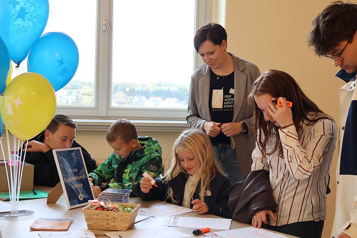 Bereits ab 10 Uhr ging es los: Eltern, Großeltern und Kinder stürmten das Schulgebäude und machten sich auf, die Schullrallye zu meistern. An sechs Stationen warteten spannende Rätsel und knifflige Aufgaben, die mit einem tollen Preis in der Bibliothek belohnt wurden.