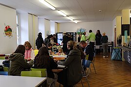 Wer nach all den Entdeckungen noch hungrig war, konnte sich in der Mensa der 12. Klassen mit Kuchen, Kaffee und leckeren chinesischen Köstlichkeiten stärken.