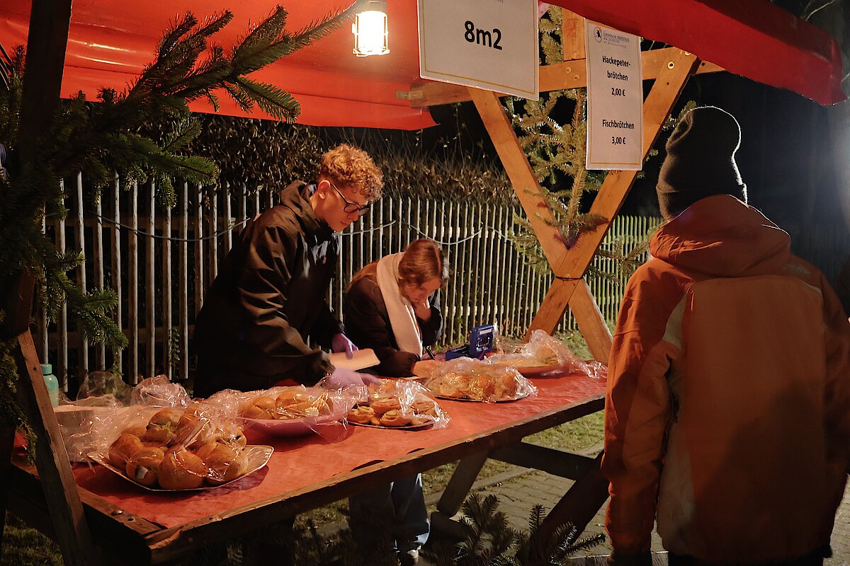 Der traditionelle Weihnachtsmarkt an unserer Oberschule zog auch dieses Jahr wieder viele Besucher an. Auf dem Schulhof herrschte reges Treiben, und die Kinder hatten mit viel Begeisterung köstliche Leckereien vorbereitet. Neben selbstgebackenen Plätzchen und gebrannten Mandeln gab es Hotdogs, Pommes, Glühwein, Punsch und allerlei Leckeres vom Grill. Jede Klasse hatte, wie gewohnt, eine Aufgabe übernommen und mit viel Eifer und Freude ihre Waren verkauft, um die Klassenkasse aufzufüllen.