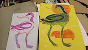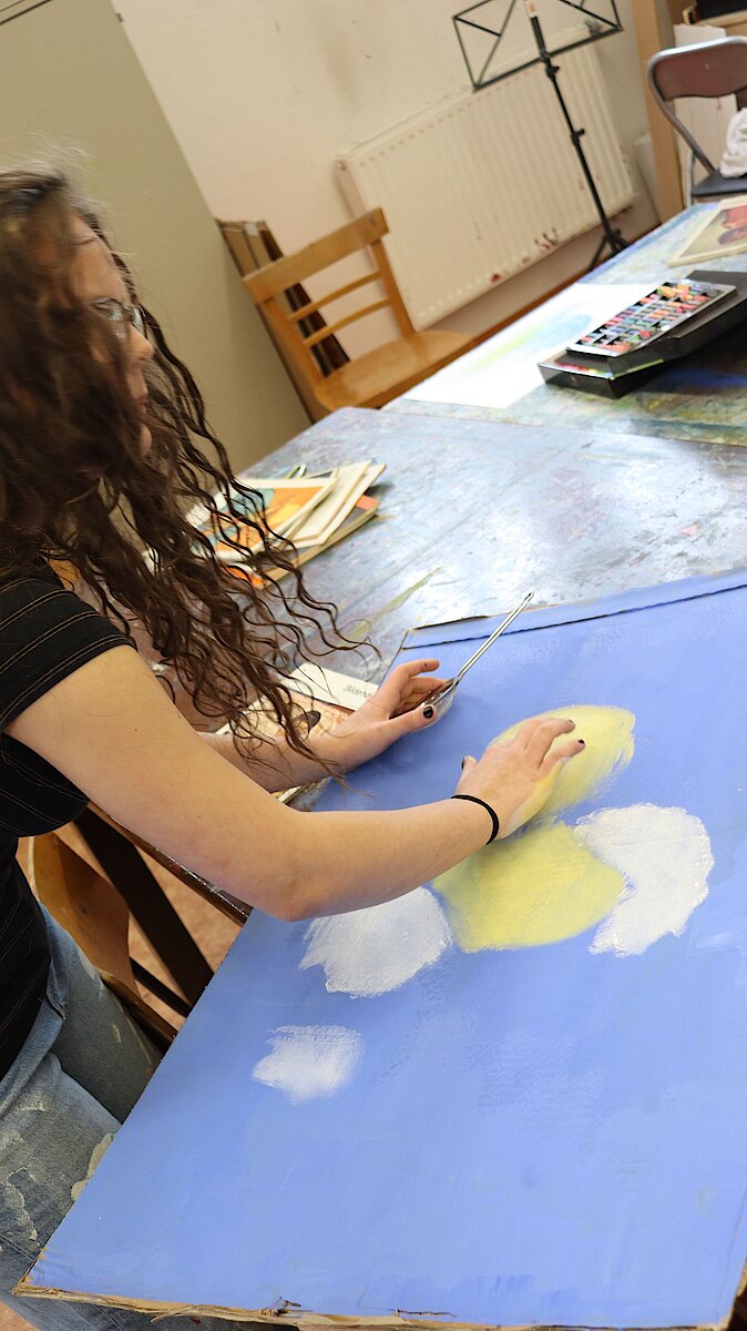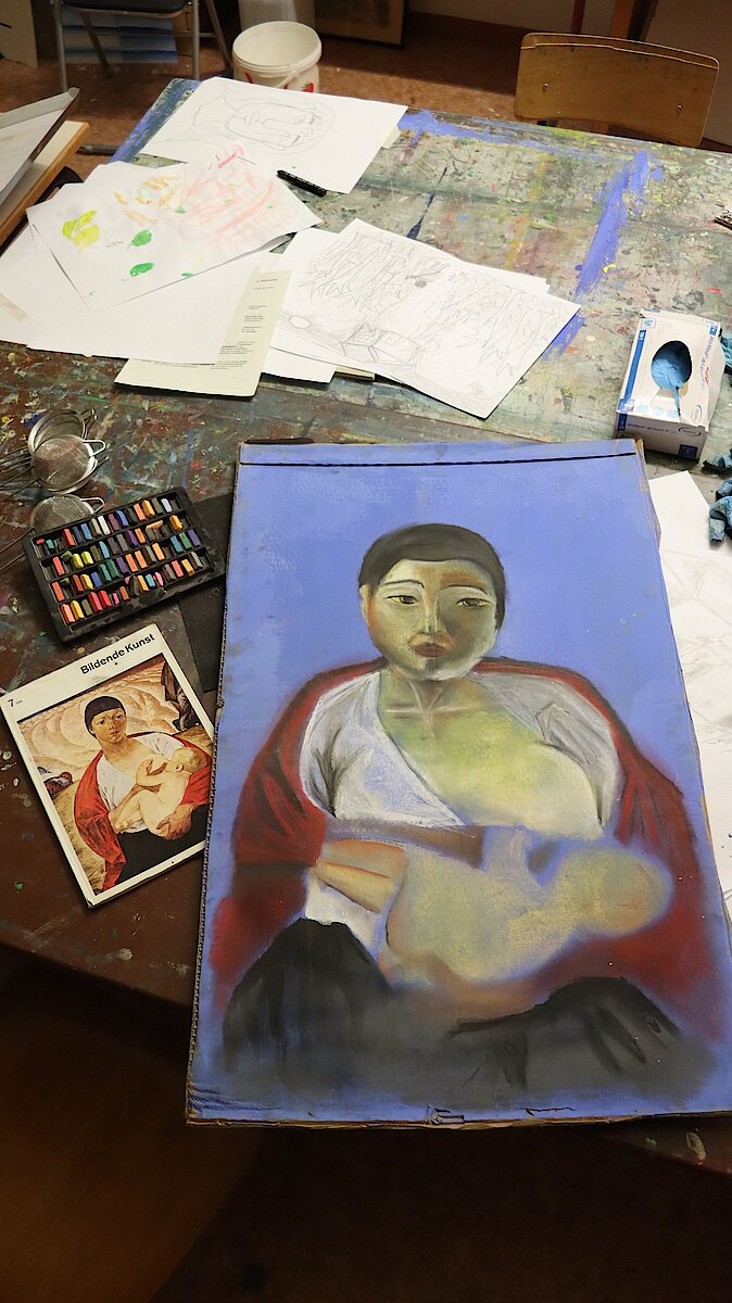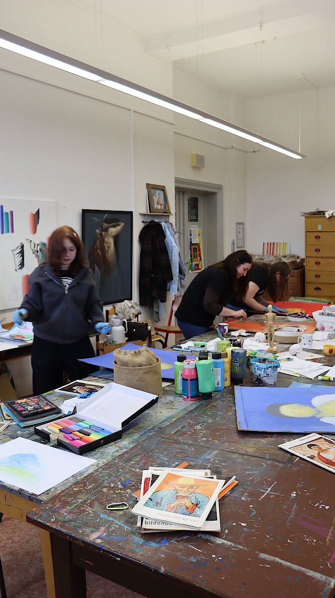 Jeder Tag der Projektwoche bot neue Impulse und Herausforderungen: von der zarten Bleistiftlinie über die kraftvollen Kontraste bis hin zu den leuchtenden Farben der Pastellkreiden. Besonders spannend war die Arbeit an einem dreidimensionalen Portrait, dass den Teilnehmenden eine ganz neue Perspektive auf Raum und Form eröffnete. Unsere TeilnehmerInnen erkundeten traditionelle und moderne Ansätze wie Schraffuren, Lavierungen und experimentelle Methoden, wie z. Bsp. Kreide und Sieb.